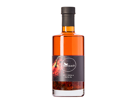 Biorausch Spicy Pizza & Pasta ÖlDas Spicy Pizza & Pasta Öl ist die perfekte Wahl für alle Liebhaber von würzigen und aromatischen italienischen Gerichten. Mit einer feinen Kombination aus Chili, Knoblauch, Paprika, Petersilie, Oregano, Basilikum, Tomatenflocken und reinem Sonnenblumenöl sorgt dieses Öl für einen intensiven Geschmack, der Ihre Pizza und Pasta zu einem unvergesslichen Genuss macht.Aroma und GeschmackDas Spicy Pizza & Pasta Öl bietet eine würzige Schärfe durch die Chili, die durch den aromatischen Knoblauch perfekt ergänzt wird. Der Paprika und die Tomatenflocken bringen eine herzhafte, leicht süßliche Komponente ein, während die klassischen Kräuter wie Petersilie, Oregano und Basilikum dem Öl eine frische, mediterrane Note verleihen. Diese ausgewogene Mischung sorgt dafür, dass Ihre Gerichte nicht nur scharf, sondern auch aromatisch und vielsichtig schmecken.VerwendungsmöglichkeitenFür Pizza: Geben Sie das Spicy Pizza & Pasta Öl direkt auf den fertigen Pizzaboden oder träufeln Sie es nach dem Backen großzügig über Ihre Pizza. Es verleiht der Pizza eine köstliche, würzige Note und verstärkt die Aromen von Tomaten und Käse.Für Pasta: Mischen Sie das Öl mit frisch gekochten Pasta oder verwenden Sie es als Grundlage für eine schnelle Pasta-Sauce. Es passt perfekt zu Spaghetti, Penne oder Tagliatelle und sorgt für eine herrlich aromatische Basis. Auch als Pasta-Dressing für kalte Nudelgerichte ist es eine großartige Wahl.Für Bruschetta und Focaccia: Verwenden Sie das Öl als Dip für frisches, geröstetes Brot oder Focaccia. Der Geschmack von Knoblauch, Basilikum und Tomatenflocken bringt die italienische Küche direkt zu Ihnen nach Hause.Für Marinaden und Dressings: Mischen Sie das Öl mit etwas Zitronensaft und Balsamico-Essig, um eine würzige Marinade für Grillgemüse, Hähnchen oder Fisch zu kreieren. Auch als Salatdressing sorgt es für eine kräftige, scharfe Note.Zum Verfeinern von Suppen und Saucen: Fügen Sie einen Spritzer des Spicy Pizza & Pasta Öls in Ihre Tomatensauce oder Gemüsesuppe hinzu, um die Aromen zu intensivieren und eine leichte Würze zu verleihen.Für Grillgerichte: Verwenden Sie das Öl, um Gegrilltes zu bestreichen oder als Dip für Grillgemüse oder Fleisch. Besonders bei Grillabenden oder BBQ-Partys wird es Ihre Gäste begeistern.Nährwerte und VorteileDas Spicy Pizza & Pasta Öl ist nicht nur ein Geschmackserlebnis, sondern auch eine gesunde Wahl, da es auf reinem Sonnenblumenöl basiert. Dieses Öl enthält gesunde Fettsäuren und ist eine hervorragende Quelle für Vitamin E. Außerdem bringt die Kombination aus Kräutern und Gewürzen zahlreiche gesundheitliche Vorteile mit sich, wie zum Beispiel die entzündungshemmenden Eigenschaften von Oregano und die antioxidativen Vorteile des Paprikas.FazitDas Spicy Pizza & Pasta Öl ist der ideale Begleiter für alle, die die italienische Küche lieben und ein wenig Würze und Aroma in ihre Gerichte bringen möchten. Ob auf Pizza, Pasta oder als Dip – dieses Öl verleiht Ihren Gerichten eine aufregende, scharfe Note und bringt frische Kräuteraromen in jede Zubereitung. Perfekt für alle, die es gerne würzig und aromatisch mögen!Zutaten: Chili, Knoblauch, Paprika, Petersilie, Oregano, Basilikum, Tomatenflocken, reines Sonnenblumenöl Aus kontrolliertem AnbauDurchschnittliche Nährwerte pro 100 ml:Energie: 805 kcal / 3371 kJ Fett: 90,7 g davon gesättigte Fettsäuren: 14,3 g Kohlenhydrate: 0g davon Zucker: 0g Eiweiß: 0g Salz: 0g