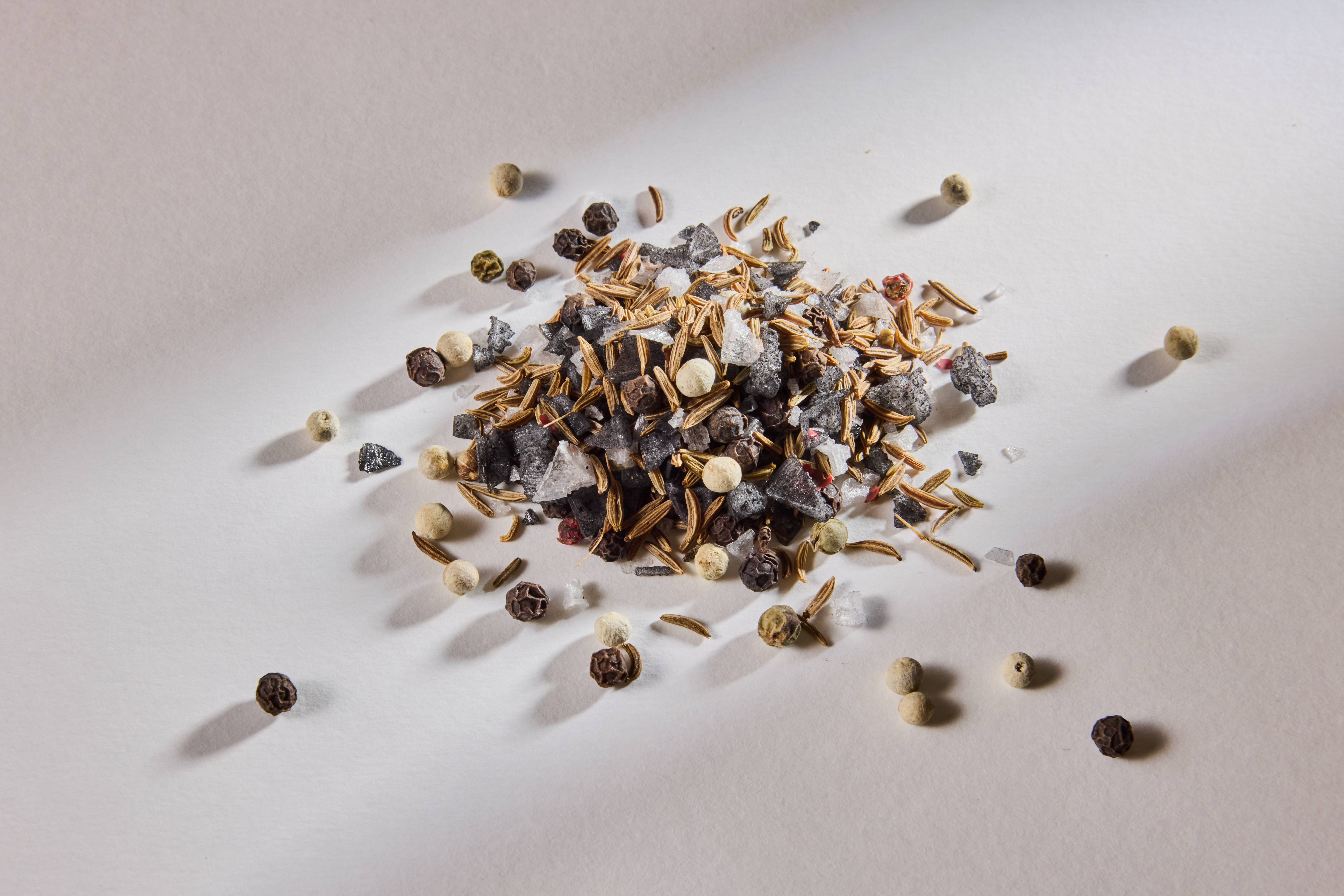 Begleitet werden sie von buntem Pfeffer, der dem Salz eine fruchtig-pikante Schärfe verleiht. Grob zerstoßen, entfalten die Pfefferkörner beim Zerbeißen ihre ganze aromatische Tiefe – perfekt zu Speck, Käse oder Radi.