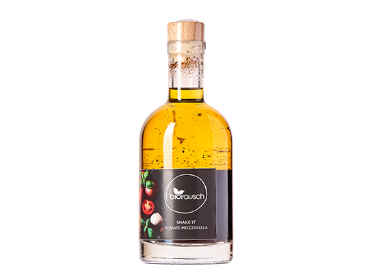 Biorausch SHAKE IT FreshShake It Fresh ist eine außergewöhnliche Fruchtessig-Öl-Mischung, die sich perfekt für Menschen eignet, die kreative und gewürzintensive Aromen in ihrer Küche lieben. Diese vielseitige Mischung kombiniert hochwertige Zutaten und Gewürze zu einem einzigartigen Erlebnis. Mit einer aufregenden Mischung aus Fruchtessig, hochwertigem Öl, und einer Vielzahl von Gewürzen und Aromen bringt Shake It Fresh Frische, Tiefe und ein kleines Stück Exotik in jede Mahlzeit.Zutaten und AromenDie Zutaten dieser Mischung wurden sorgfältig ausgewählt, um das volle Geschmackspotenzial zu entfalten:Fruchtessig: Der Fruchtessig bringt eine erfrischende Säure, die die Aromen der anderen Zutaten ausbalanciert und die Frische eines frischen Dressings verstärkt.Hochwertiges Öl: Ein edles, leicht fruchtiges Öl sorgt für die Grundlage dieser Mischung und ermöglicht die perfekte Integration der Aromen.Fleur de Sel: Dieses hochwertige Salz fügt einen feinen, natürlichen Geschmack hinzu und hebt die anderen Zutaten hervor.Indische Sonnenflocken: Diese exotischen Flocken verleihen dem Öl eine einzigartige Note und eine sanfte Schärfe, die an die Vielfalt indischer Gewürze erinnert.Paprika und geräucherte Paprika: Beide Paprikasorten bringen eine harmonische Balance aus süßen und rauchigen Aromen, die in Kombination mit den anderen Zutaten eine angenehme Tiefe schaffen.Tomaten: Tomaten verstärken den fruchtigen Charakter der Mischung und sorgen für eine subtile, frische Süße.Schwarzkümmel: Mit seiner leicht bitteren, warmen Würze trägt der Schwarzkümmel dazu bei, den Geschmack zu verfeinern und einen Hauch von Orient zu verleihen.Knoblauch und Zwiebel: Klassische Würzkomponenten, die dem Öl eine herzhafte Grundlage und Tiefe verleihen.Pfeffer und Chili: Diese Gewürze sorgen für die angenehme Schärfe und Würze, die jedes Gericht lebendig machen.Balsamico Schwarz: Der Balsamico bringt eine raffinierte Süße und Säure, die perfekt mit den Frucht- und Gewürzaromen harmoniert.Orangen- und Zitronenöl: Diese zitrusartigen Aromen geben der Mischung eine frische, fruchtige Note, die perfekt mit den kräftigen Gewürzen zusammenarbeitet.AnwendungsmöglichkeitenShake It Fresh ist ein wahres Allround-Talent in der Küche und kann auf verschiedene Weisen verwendet werden:Salatdressings: Ein idealer Begleiter für grüne Salate, Tomaten- oder Mozzarella-Salate, um die Frische und Komplexität des Dressings zu erhöhen.Marinaden: Verwandeln Sie Fleisch, Fisch oder Gemüse mit dieser Mischung in eine würzige und aromatische Mahlzeit. Einfach das Shake It Fresh über die Zutaten gießen und einige Stunden ziehen lassen.Dip für Brot und Focaccia: Kombinieren Sie es mit frischem, knusprigem Brot oder Focaccia für einen würzigen und aromatischen Dip.Pasta und Pizza: Träufeln Sie es über frisch gekochte Pasta oder Pizza, um den Geschmack zu intensivieren und eine exotische Würze hinzuzufügen.Gemüsegerichte: Perfekt für gegrilltes oder gebratenes Gemüse, um einen einzigartigen Geschmack zu erzeugen.Frittierte oder gegrillte Snacks: Verwenden Sie es als Dip für frittiertes Gemüse, Pommes oder Fingerfood für ein extra aromatisches Erlebnis.Vorteile und BesonderheitenVielseitig: Von Salaten über marinierte Fleisch- und Gemüsegerichte bis hin zu Dips und Saucen – Shake It Fresh passt zu nahezu jeder Mahlzeit.Frische Aromen: Die Kombination aus Fruchtessig, hochwertigen Ölen und einer Vielzahl an Gewürzen bringt eine angenehme Frische und Tiefe in jedes Gericht.Exotisch und pikant: Mit einer Kombination aus indischen und mediterranen Aromen bringt Shake It Fresh exotische und komplexe Geschmacksrichtungen in Ihre Küche.Frei von künstlichen Aromen: Shake It Fresh setzt auf natürliche und qualitativ hochwertige Zutaten, um einen reinen, unverfälschten Geschmack zu bieten.FazitMit Shake It Fresh holen Sie sich eine vielseitige und aromatische Mischung in Ihre Küche, die ideal für die Zubereitung von Dips, Dressings, Marinaden und vielem mehr geeignet ist. Die Kombination aus fruchtigem Essig, hochwertigem Öl und einer vielfältigen Gewürzpalette sorgt für ein unverwechselbares Geschmackserlebnis, das Ihre Gerichte auf ein neues Level hebt. Erleben Sie die Frische und die außergewöhnliche Aromenvielfalt, die dieses Gewürzöl zu einem unverzichtbaren Küchenhelfer macht.Angebrochen ist das SHAKE IT bis 6 Monate im Kühlschrank haltbarZutaten: Fruchtessig, hochwertiges Olivenöl, Fleur de Sel, Indische Sonnenflocken, Paprika, Tomaten, Schwarzkümmel, Knoblauch, Zwiebel, Pfeffer, Chili, geräucherte Paprika, Balsamico Schwarz, Orangen und ZitronenölDurchschnittliche Nährwerte pro 100 ml:Energie: 457 kcal / 1912 kJFett: 45 gdavon gesättigte Fettsäuren: 6 gCholesterin: 0 mgNatrium: 836 mgKalium: 67 mgKohlenhydrate: 16 gdavon Zucker: 0 gEiweiß: 0,8 gBallaststoffe: 16 g