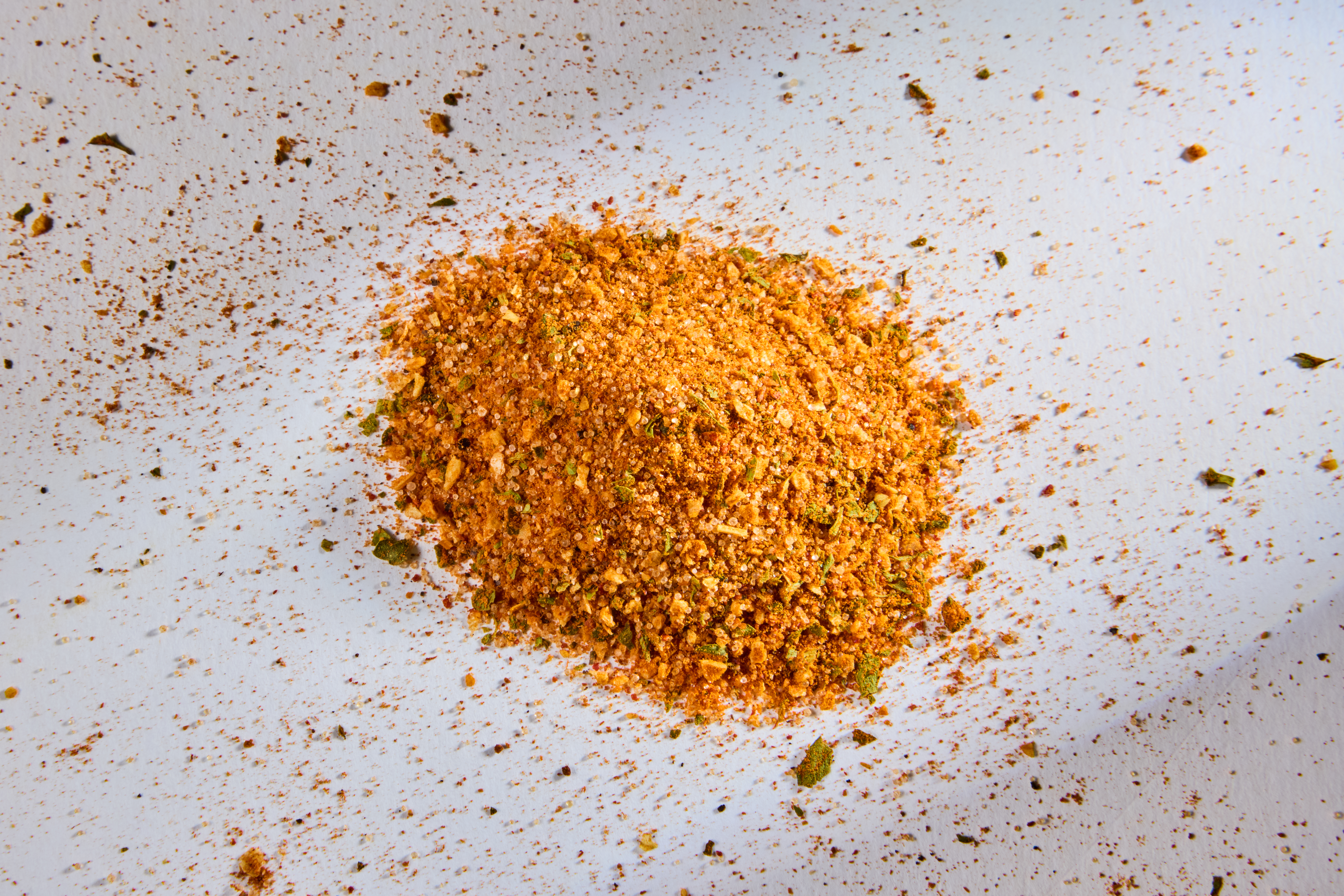 Salz, Chili, Knoblauch, Paprika geräuchert, Zwiebel, Paprika, Hagebutte, Orangenschalen, Fenchel, Algen, Zitronengrass, Mandarinenschale